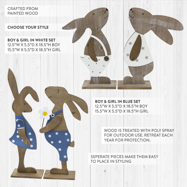 Boy & Girl Bunny Easter Decorations, Set of 2, Choose Your Style