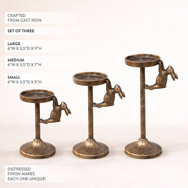 Cast Iron Bunny Taper Candle Holder, Set of 3