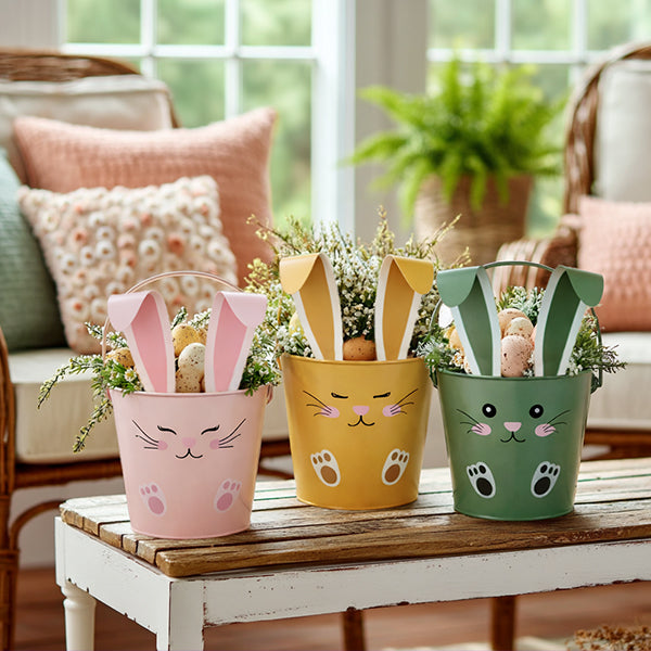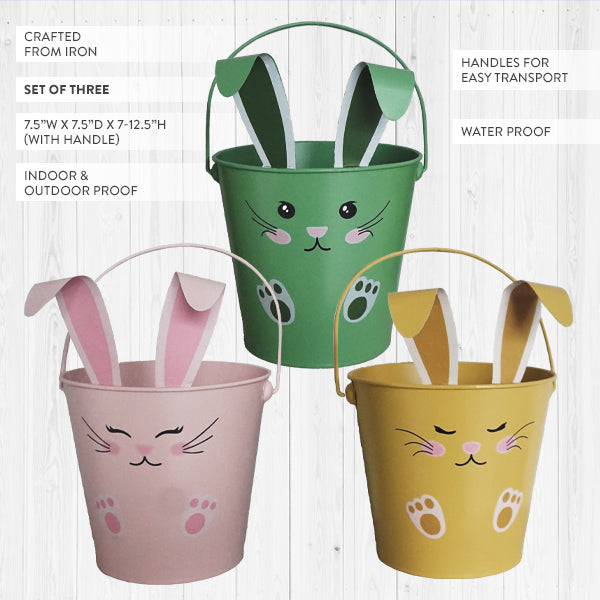 Adorable Bunny Face Easter Outdoor Buckets, Set of Three