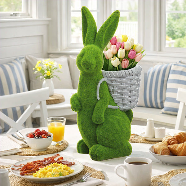 22 Inch Flocked Green Bunny Planter with Basket