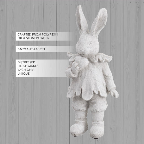 15 Inch Distressed White Easter Bunny Figurine
