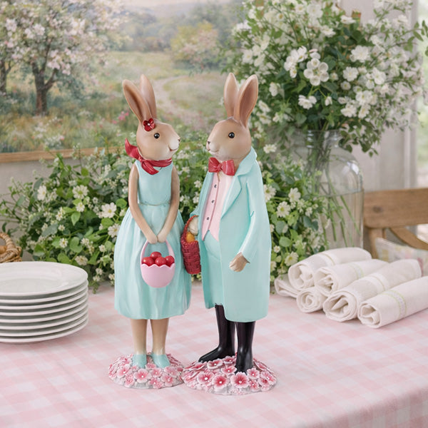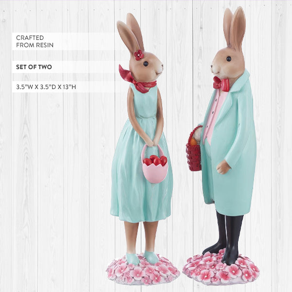 13 Inch Easter Bunny Couple Figurines, Set of 2