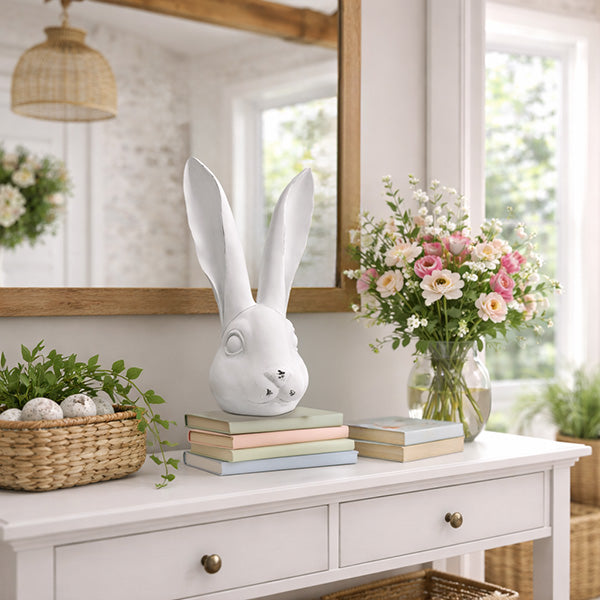 14 Inch Artisan Distressed White Bunny Head Sculpture