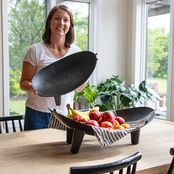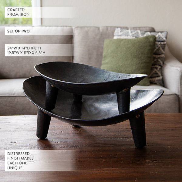 Distressed Oval Iron Bowls, Set of Two