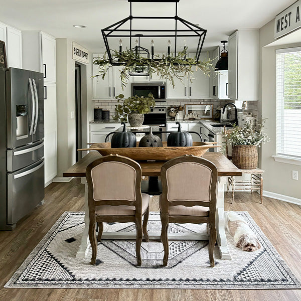 Ivory and Black Geometric Southwestern Area Rug, Pick Your Size