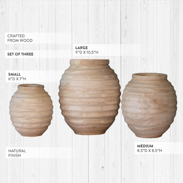 Natural Wooden Gourd Pots, Set of 3