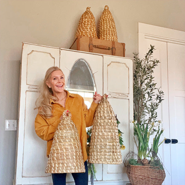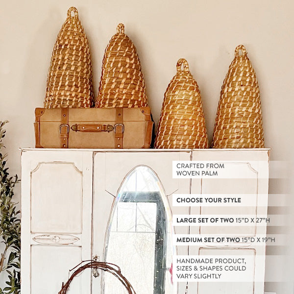 Handwoven Natural Palm Bee Skep Cloche, Set of Two, Choose Your Size
