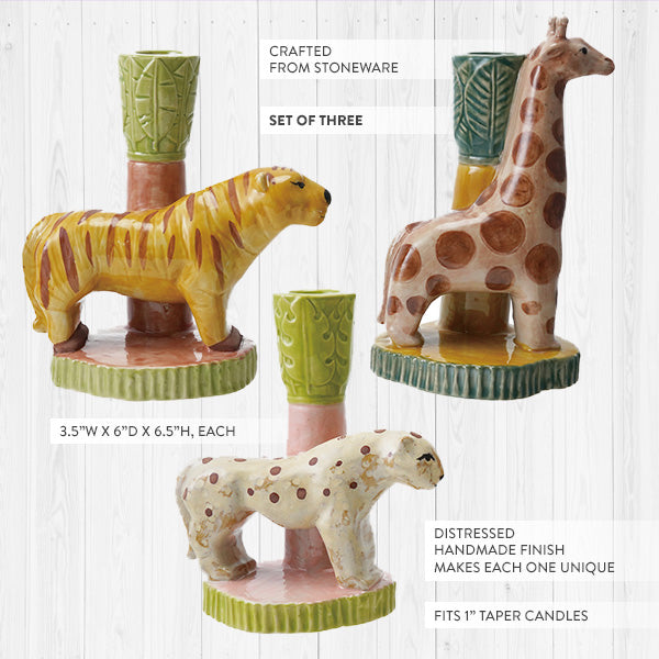 Handmade Safari Animal Candle Holders, Set of Three