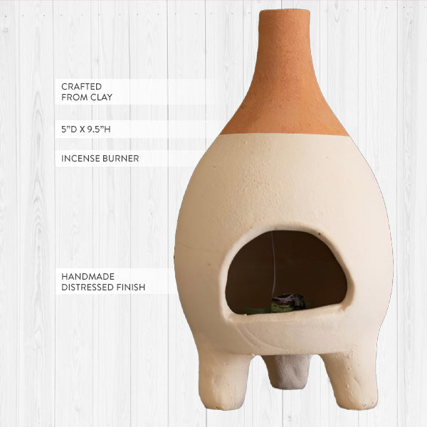 Handmade Ivory-Dipped Clay Chiminea Incense Burner