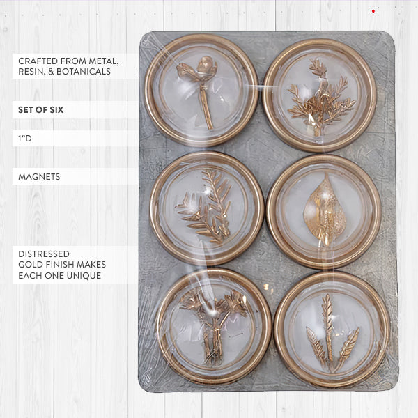 Botanical Treasures Gold Leaf Magnets, Set of 6