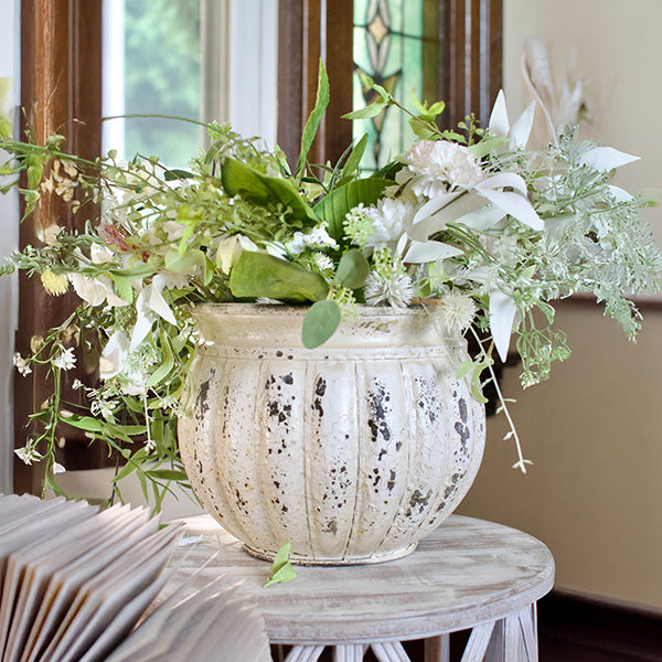 Distressed White Fluted Planter