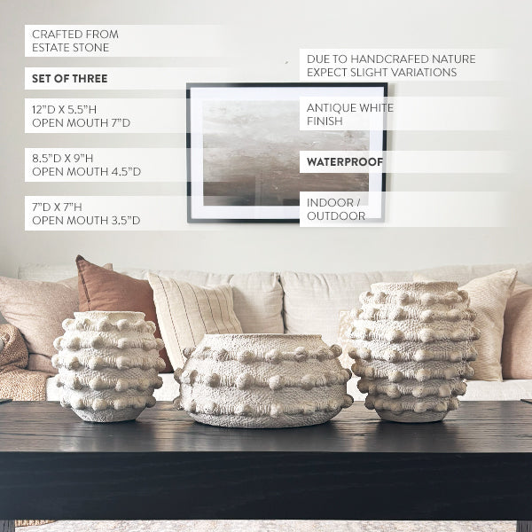 Handcrafted Textured Outdoor Antique White Planters, Set of 3