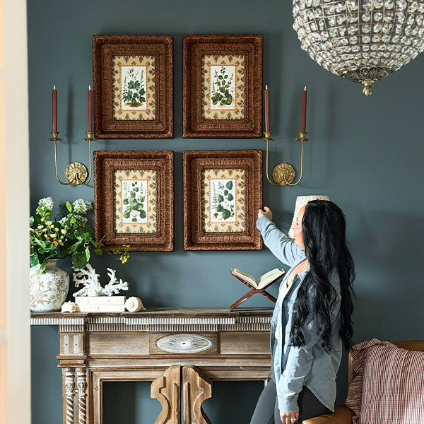 Botanical Framed Prints with Woven Frames, Set of 4