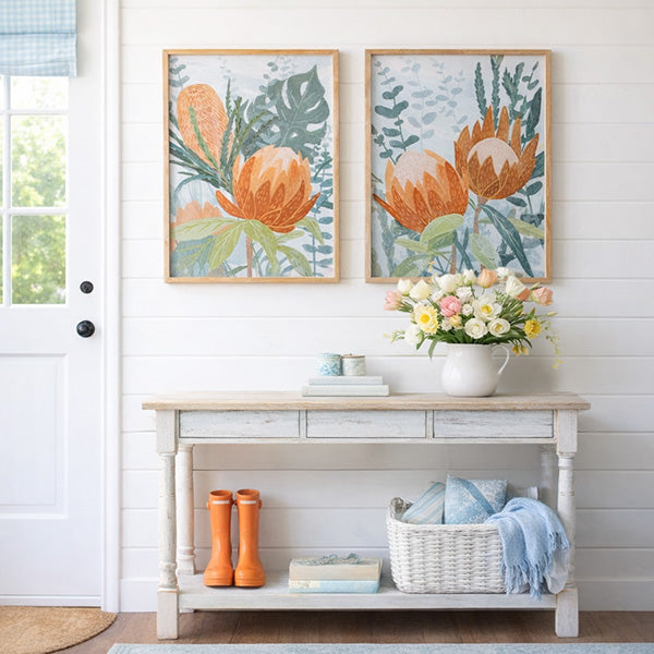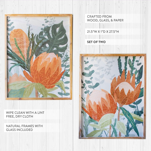Botanical Protea Framed Wall Art, Set of 2