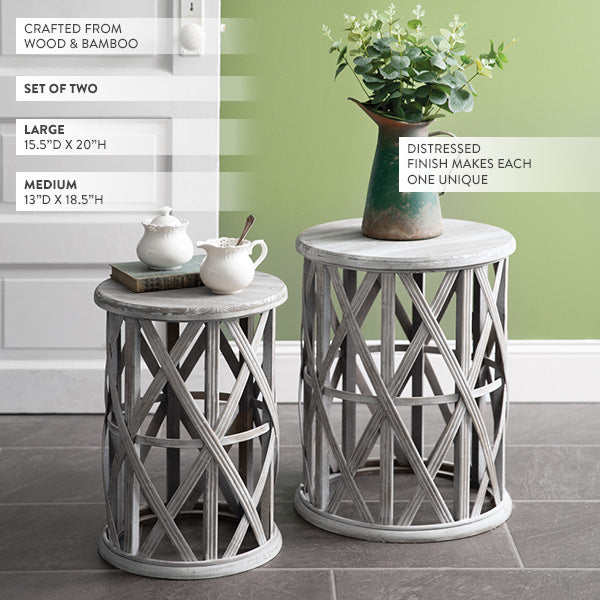 Eco-Friendly Woven Drum Accent Table, Set of 2
