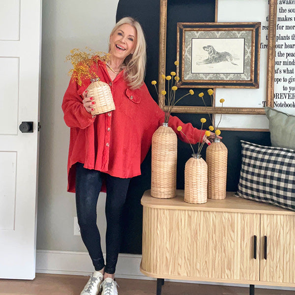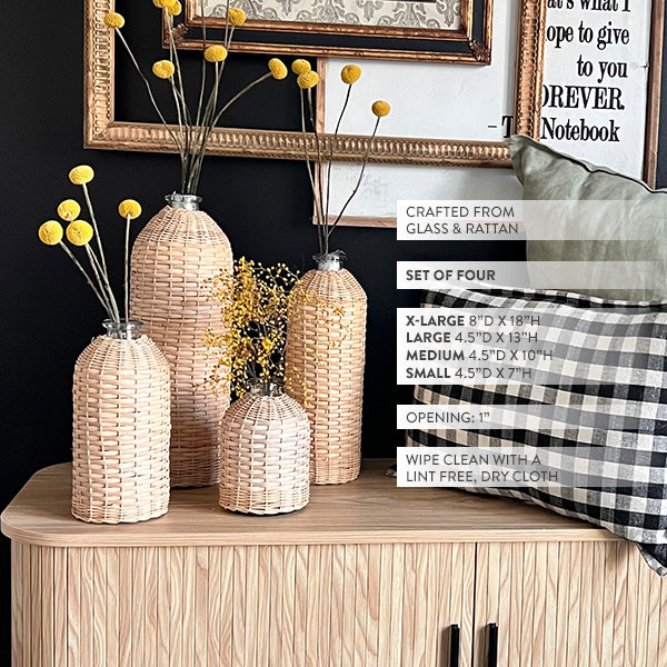 Rattan Wrapped Glass Vases, Set of Four