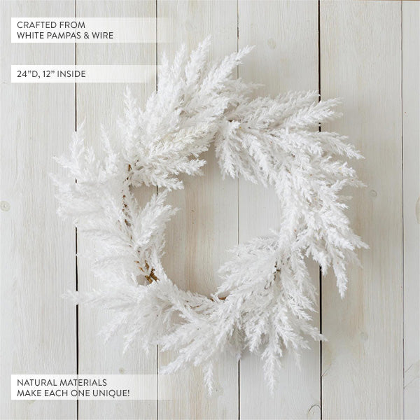 24 Inch Faux Dried White Pampas Grass Wreath
