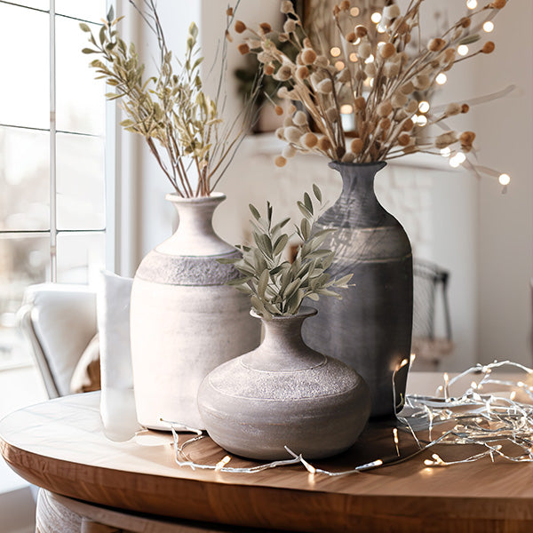 Large Handmade Elemental Clay Vases, Set of 3