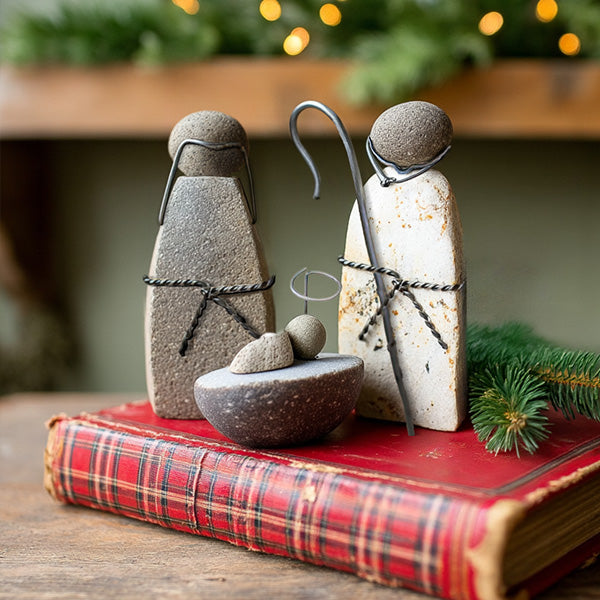 Handcrafted River Rock Holy Family, Set of 3