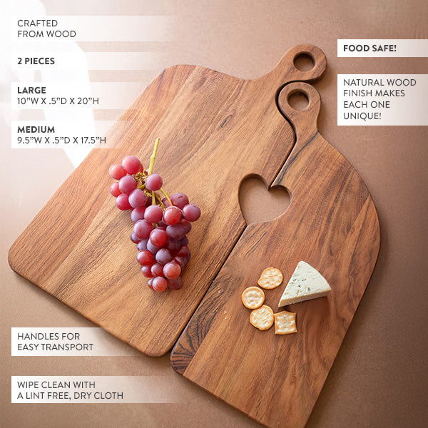 Heart Cutout Wood Charcuterie Board, Set of Two
