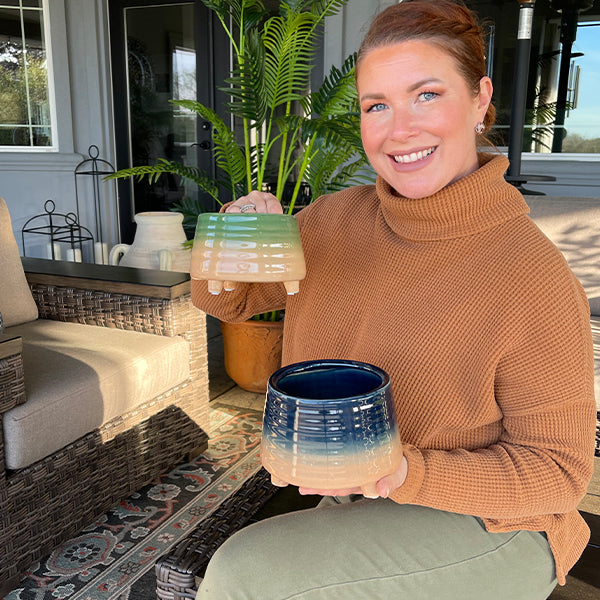 Large Two-Tone Ceramic Vase with Handles