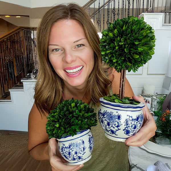 Blue Willow Preserved Boxwood Topiary, Choose Your Style
