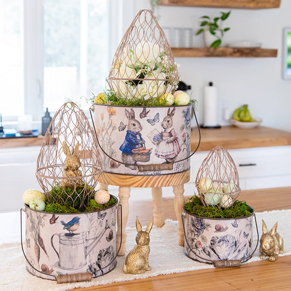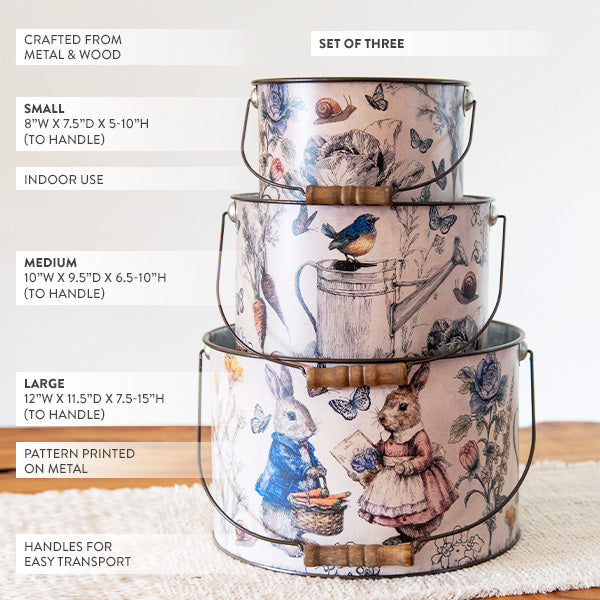 Easter Botanical Illustrated Metal Bucket Planters, Set of 3