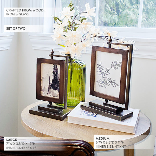 Antique Bronze Standing Pedestal Picture Frames, Set of 2