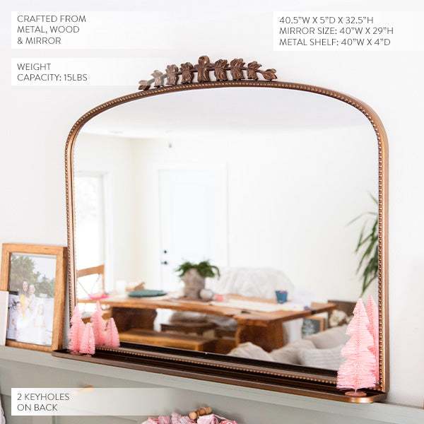 Copper Arched Mantle Mirror with Built-In Shelf
