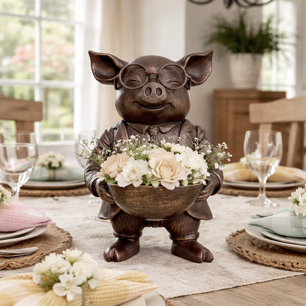 Distinguished Pig Bronze Bowl | Dapper Critters Collection