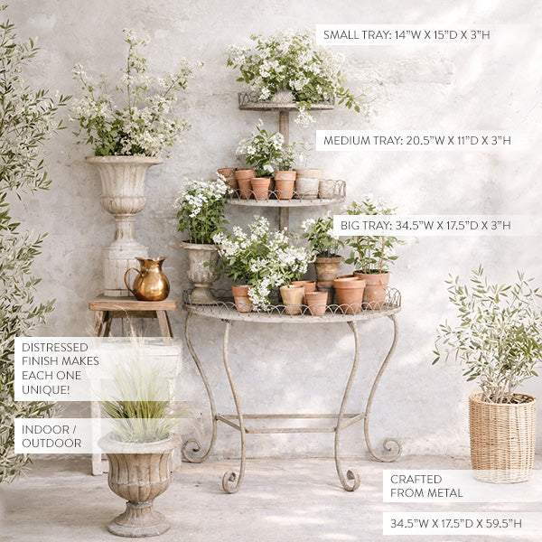 Antique Scrollwork Round Metal Plant Stand | Indoor/Outdoor