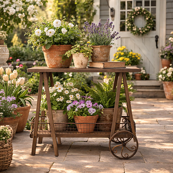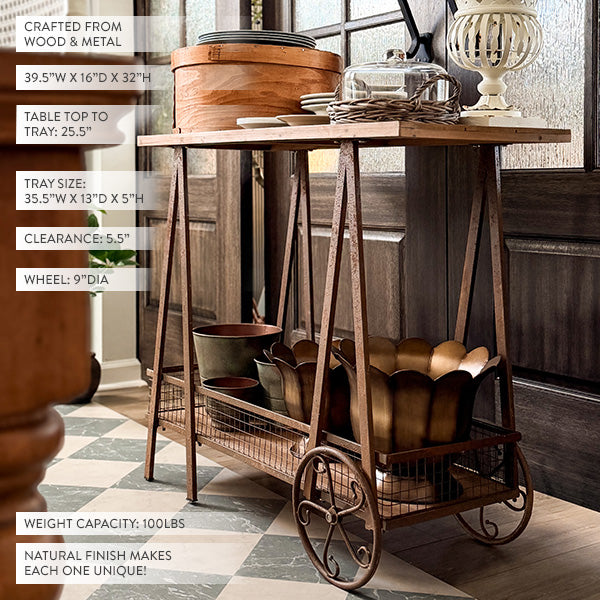 2-Tier A-Frame Rolling Garden Cart with Wire Basket