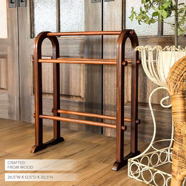 Arched Wood Blanket Rack Stand - Freestanding Quilt Display with 3 Dowel Bars