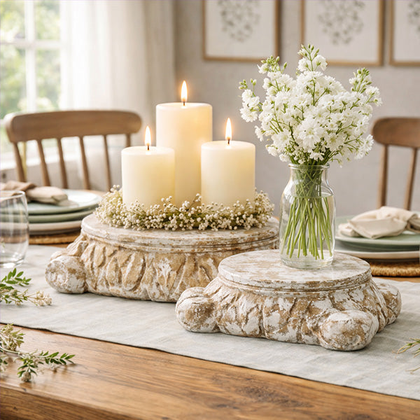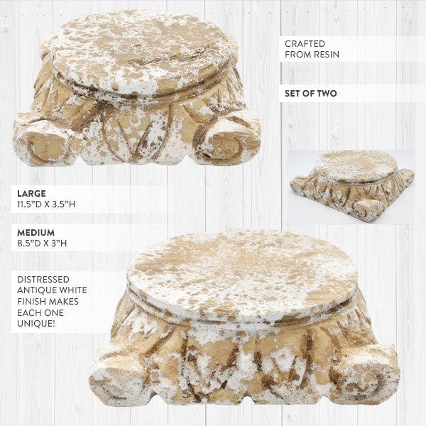 Distressed Antique White Architectural Column Riser, Set of 2