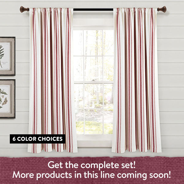 Farmhouse Stripe Yarn Dyed Cotton Window Curtain Panels, Red