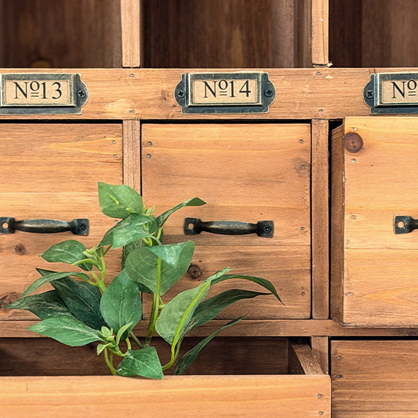 Standing at 30" tall. this isn't just storage—it's a conversation piece. Perfect for your kitchen counter (tea organization). craft room (supplies sorted by type). office (desktop clutter tamed). or entryway (keys and mail). The natural fir wood and vintage hardware work with farmhouse. cottage. industrial. or eclectic décor.