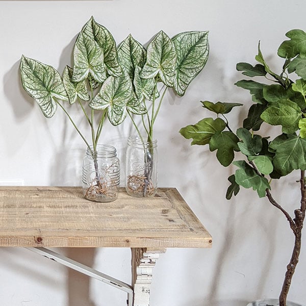 These BEAUTIFUL caladium plants are just SO light and airy and will surely breathe new life into your home this spring! Make these an addition to any vase in your home for a PERFECT touch of natural beauty. Add these to your living room coffee table. kitchen counter. bathroom. office. or entryway table! These are simple yet sure to elevate your space with a touch of greenery!