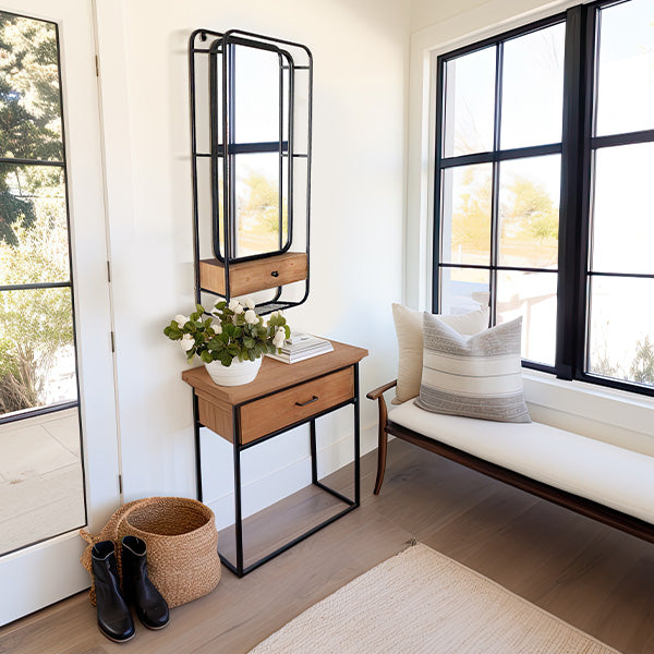 This steal is PACKED FULL of functionality! This is like THREE steals in one! Today's deal features a mirror. shelf AND drawer for organization! WOW! This is truly the PERFECT accent for any room in your home... this piece will have you organized in no time!