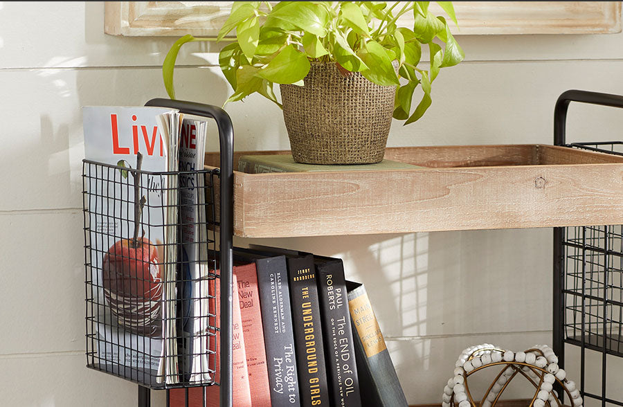 We're in LOVE with this AMAZING vintage-inspired three tiered rolling storage cart! It's THREE levels of AWESOME... it gives you so much space for just about anything and it's HUGE!!These beautifully crafted three tiered rolling storage carts are super functional and have ALL the charming farmhouse appeal! These babies are on wheels so you can easily motor it around to wherever your latest project is. Whether you are gathering supplies for a super cool craft project or just doing laundry. this cart will be your new best friend!Park this cart just about anywhere that needs a little extra charm! We can imagine it in a foyer with a farmhouse vignette on top or maybe in the kitchen near your island or a unique side table in the bedroom...this piece has endless possibilities!Just a reminder… $5 shipping!