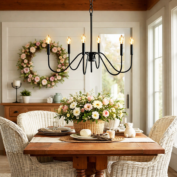 Transform your home with the charm and sophistication of this black metal chandelier—a perfect blend of function and style.