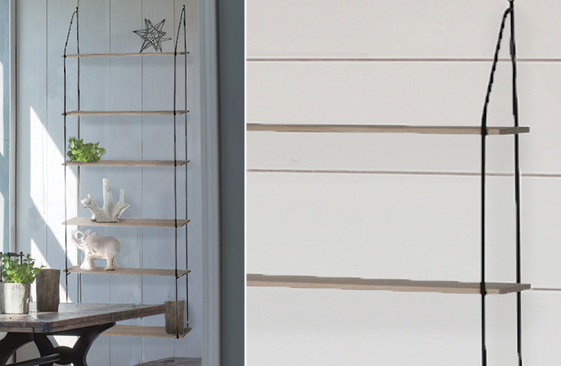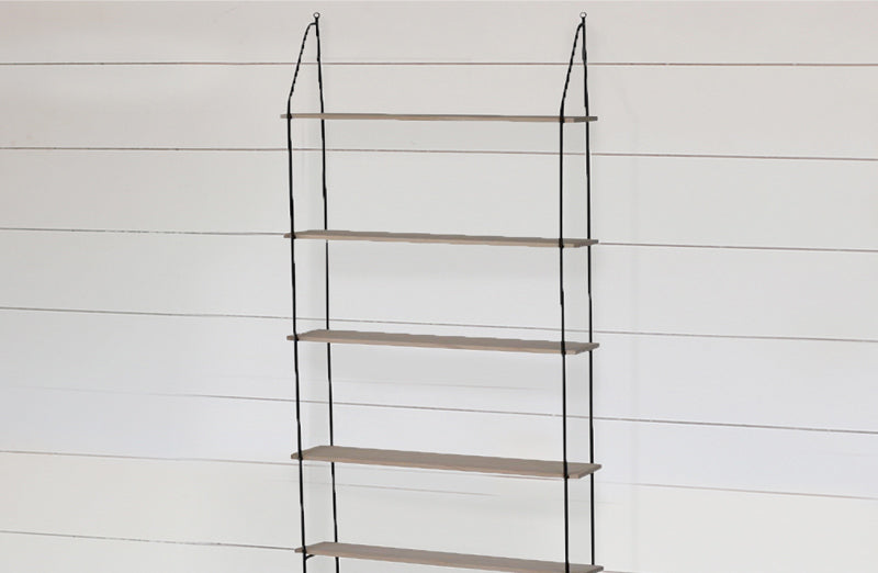 With its industrial charm and functionality our wall shelf is ready to make a place in your vintage classic or rustic farmhouse styled home. Outlined in black-coated iron our wall-mounted shelf features six levels of wood shelving perfect for storage and display.