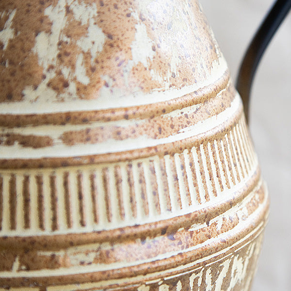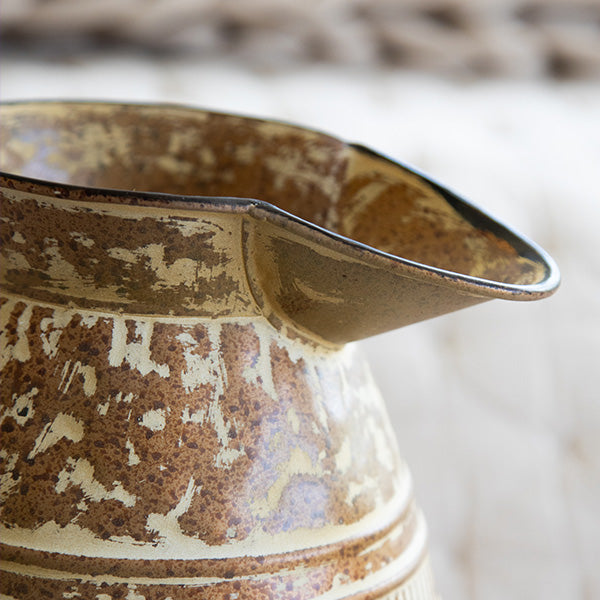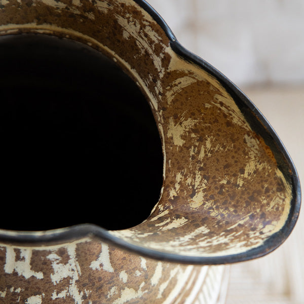 Introducing our gorgeous Aged Rustic Metal Pitcher! This vase is like living art with its perfectly distressed. and rustic metal texture. it brings an authenticity and character that can't be found in modern pieces. Every chip. every mark. tells a story and makes it completely unique to you. The classic pitcher shape adds a touch of timeless charm that feels both elegant and down-to-earth.