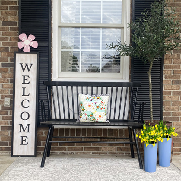 Bring style and seasonal cheer to your porch with this All Seasons Welcome Porch Sign. Its classic black-and-white design. combined with festive toppers. makes it a tasteful. easy way to keep your decor fresh and welcoming all year round.