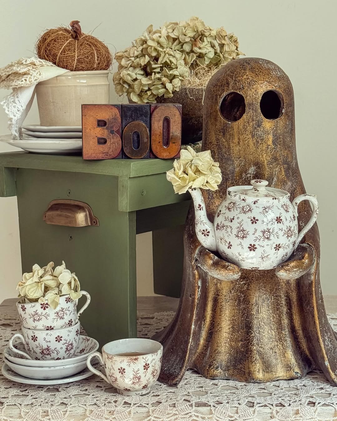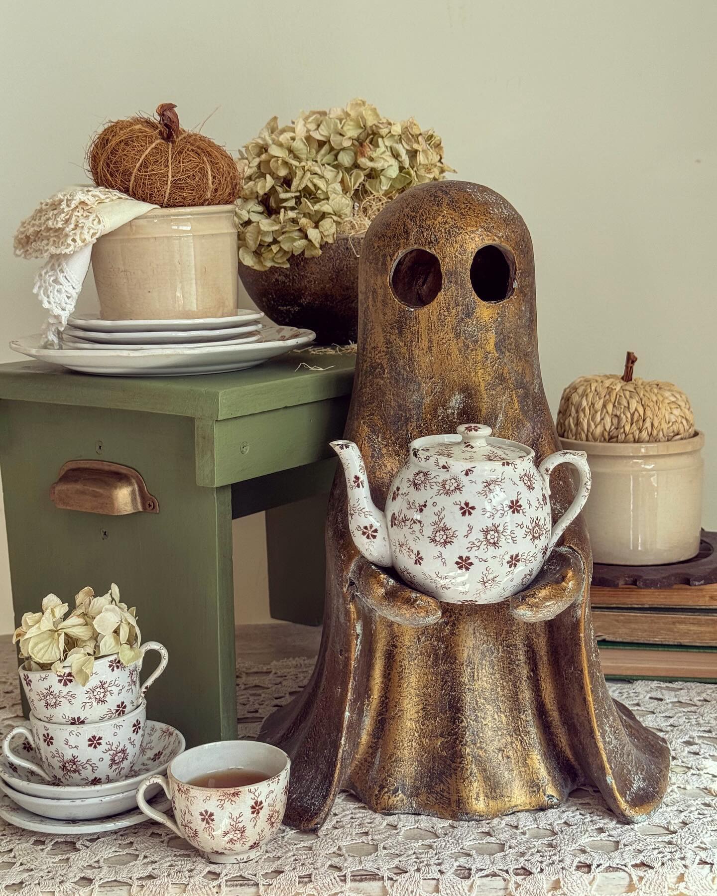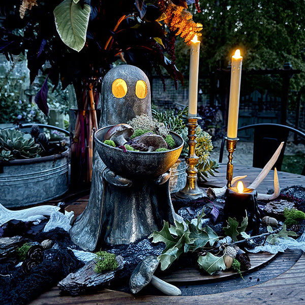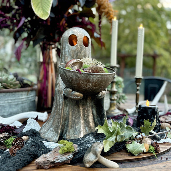 PB Dupe Alert! Don't spend nearly $200 at that other place—our Antique Distressed Gold Finish Standing Ghost with Bowl gives you the same luxe Halloween look for a steal. This spooky-chic ghost holds a removable bowl. perfect for wrapped candies or festive treats. The antique gold finish adds vintage flair with just the right amount of eerie elegance.