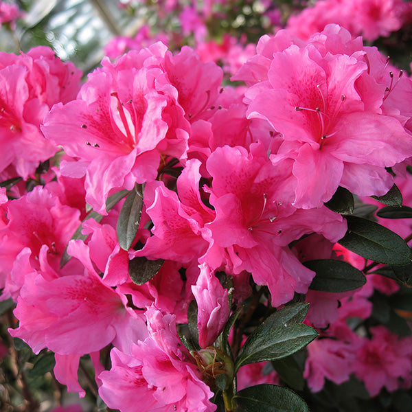 Bursting into bloom at the first sign of spring. FlorAmore Pink bids farewell to winter with an abundance of vivid pink blossoms. Unlike ordinary Azaleas. the FlorAmore series blooms continuously with heavy flowering in spring. summer and fall. These evergreen shrubs are a staple in the Southern landscape. but can be enjoyed in nearly any part of the country with proper care. Whether planted in beds. borders. containers or as a hedge. Azaleas will electrify your landscape with eye-popping color.