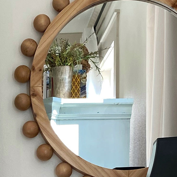 Hello friends!! There is nothing more we love here at Miyaedas than fun decorative wall pieces. Which is EXACTLY why we ADORE this Beaded Edge Wooden Mirror! It's just such a statement piece that really will brighten and bring charm to ANY room!