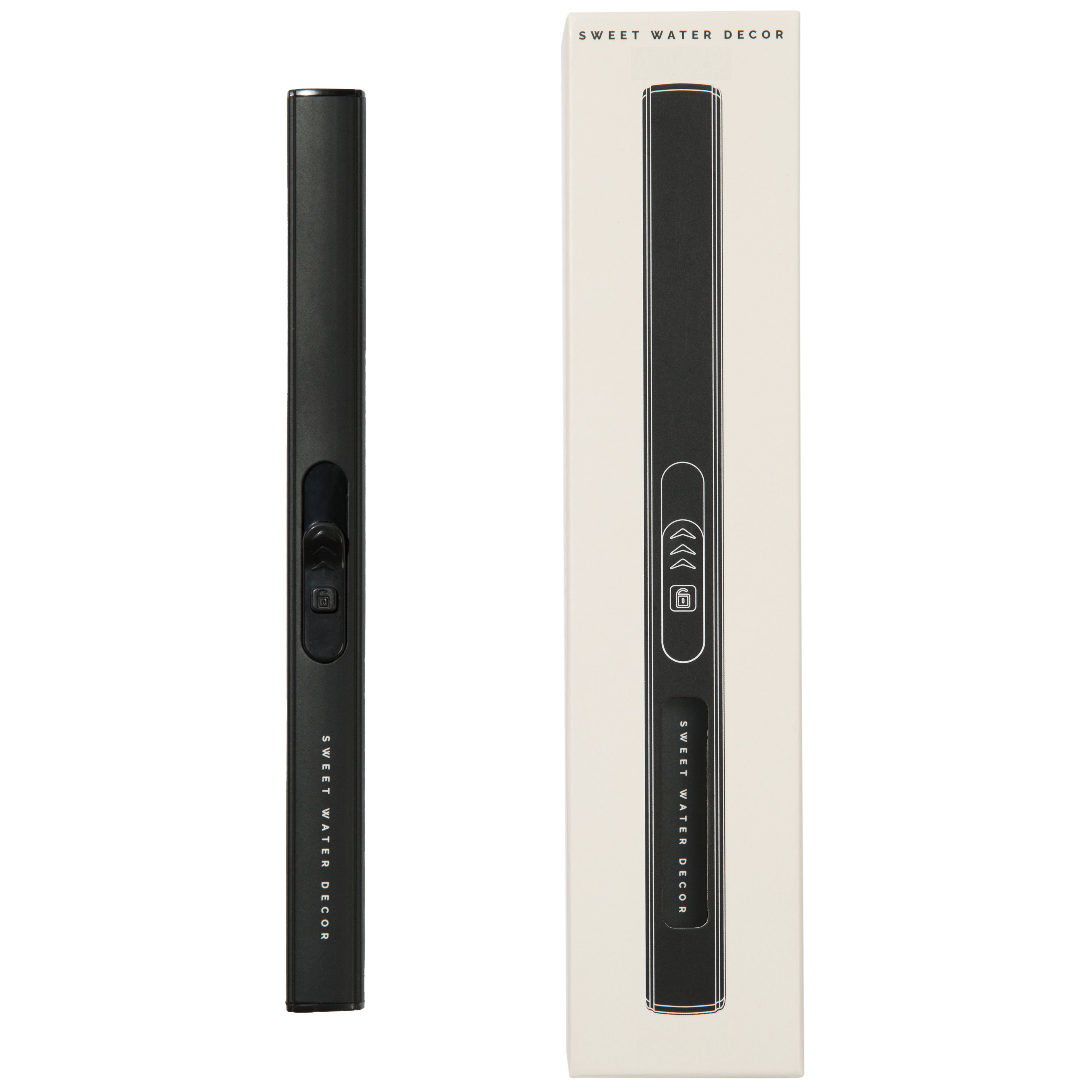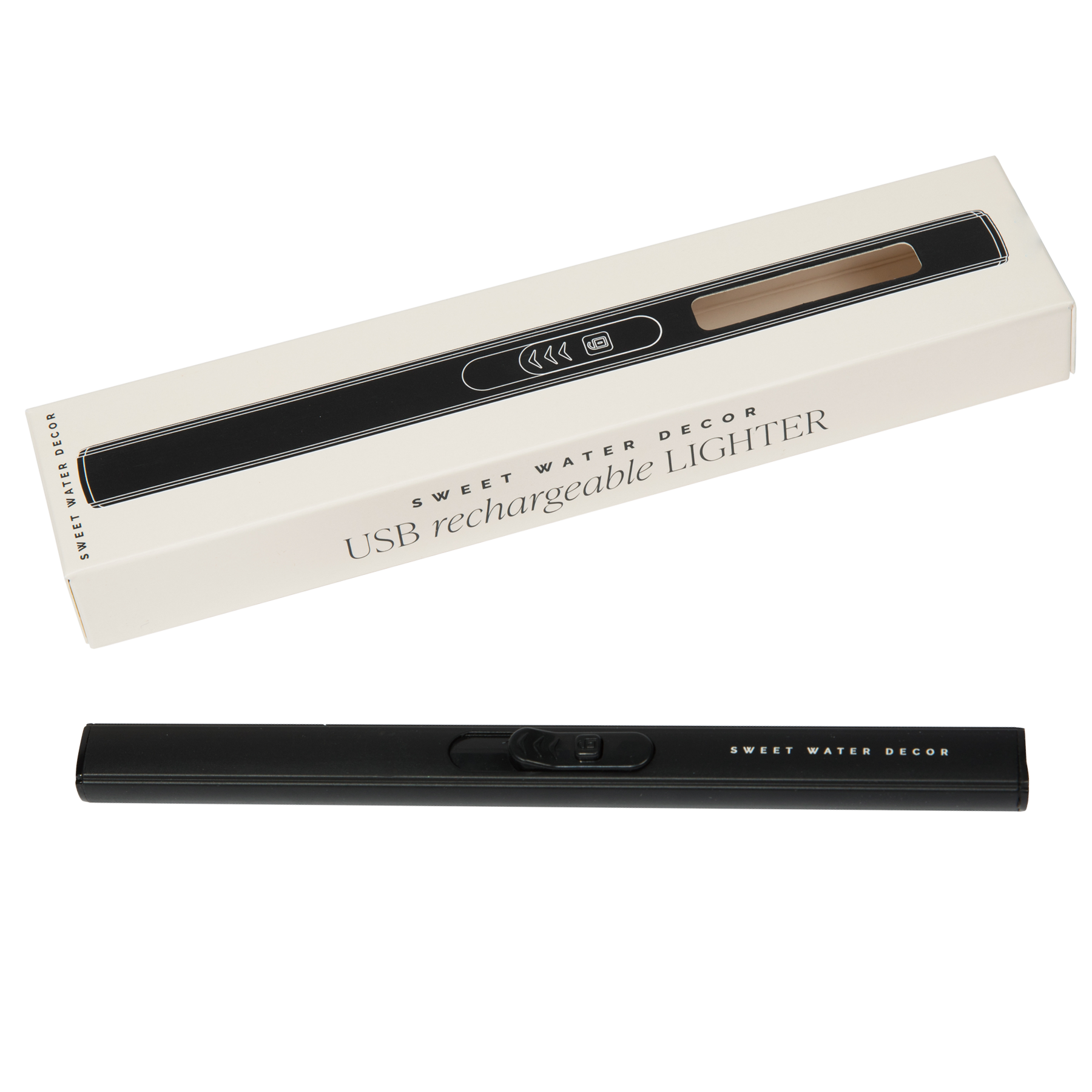 Our rechargeable electric lighter is sleek and modern looking. while also being environmentally friendly. The ultra-thin design and sleek black finish make this lighter an attractive accessory. In only 1-2 hours. you can fully charge your lighter and it will last for hundreds of uses. Pair it with our signature Sweet Water Decor candles and you have the perfect gift for anyone!