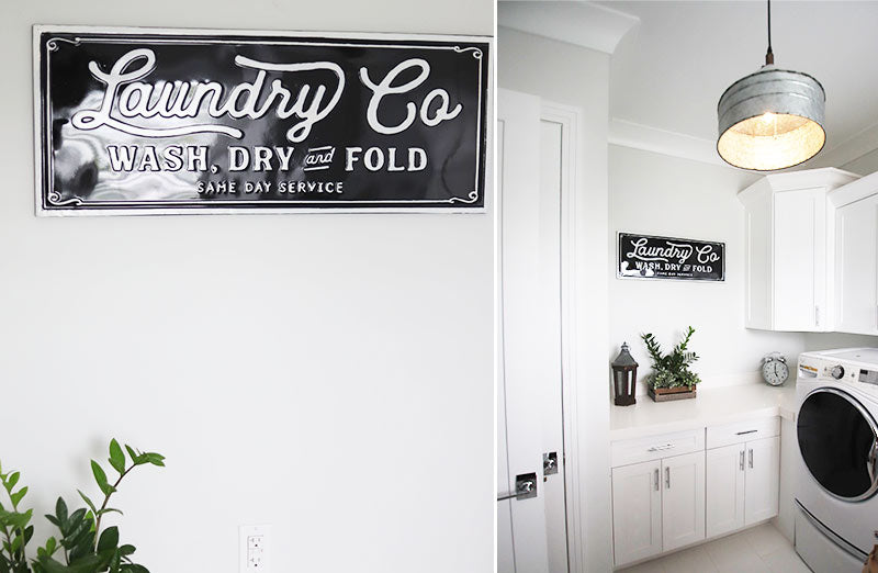 We brought you guys this enamel sign a few months ago and it was SUCH a hit we just knew we needed to offer it in another color! So now we are SUPER excited to introduce this fun Laundry Co sign in BLACK! We are in LOOOOVE with this new design because the new color palette will go so easily in any space!!