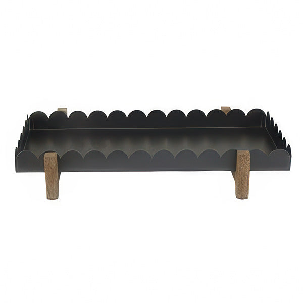 This isn't your ordinary serving tray. With its charming scalloped edges and sturdy wood legs. it elevates everything it holds—literally. Use it as a stylish riser for your morning muffins. a display platform for your favorite candles. or a catch-all for kitchen essentials.
