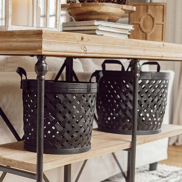 Make a HUGE statement on a budget with these Black Woven Bamboo Baskets. If you're not sure how to organize your home in STYLE. we have made it easy with this steal! The textures. color. price. and even the convenient handles make this steal a no-brainer!Whether you use these Black Woven Bamboo Baskets for storage or decor purposes. they are sure to be the STAR of any room! Turn any boring room into a farmhouse DREAM with these two baskets. Not only do they add charm and appeal. but they are also GREAT to store your throw blankets. reading material. toys and more! Simply add a potted plant or small faux tree to these and you will be astonished at the transformation of your space!Make sure you look at that price! This set of TWO is going to fly off the shelves! Grab yours NOW!Enjoy!PS - Check out how our friend